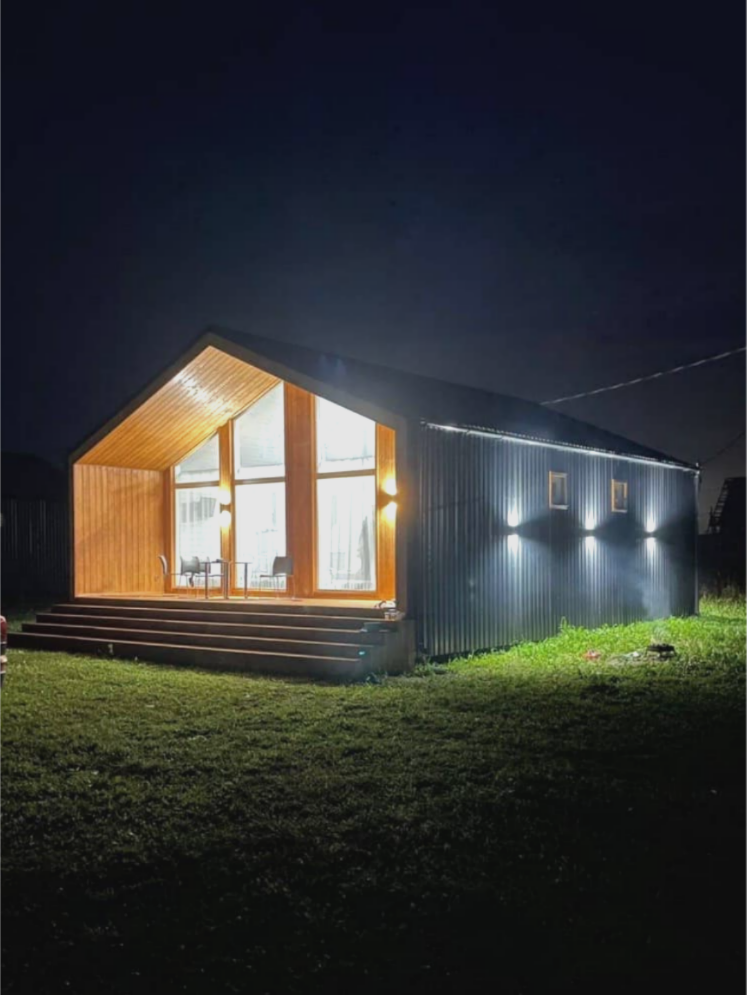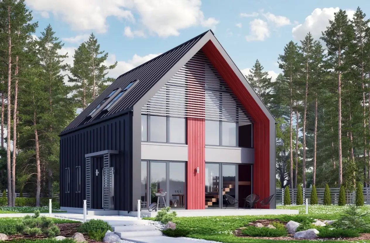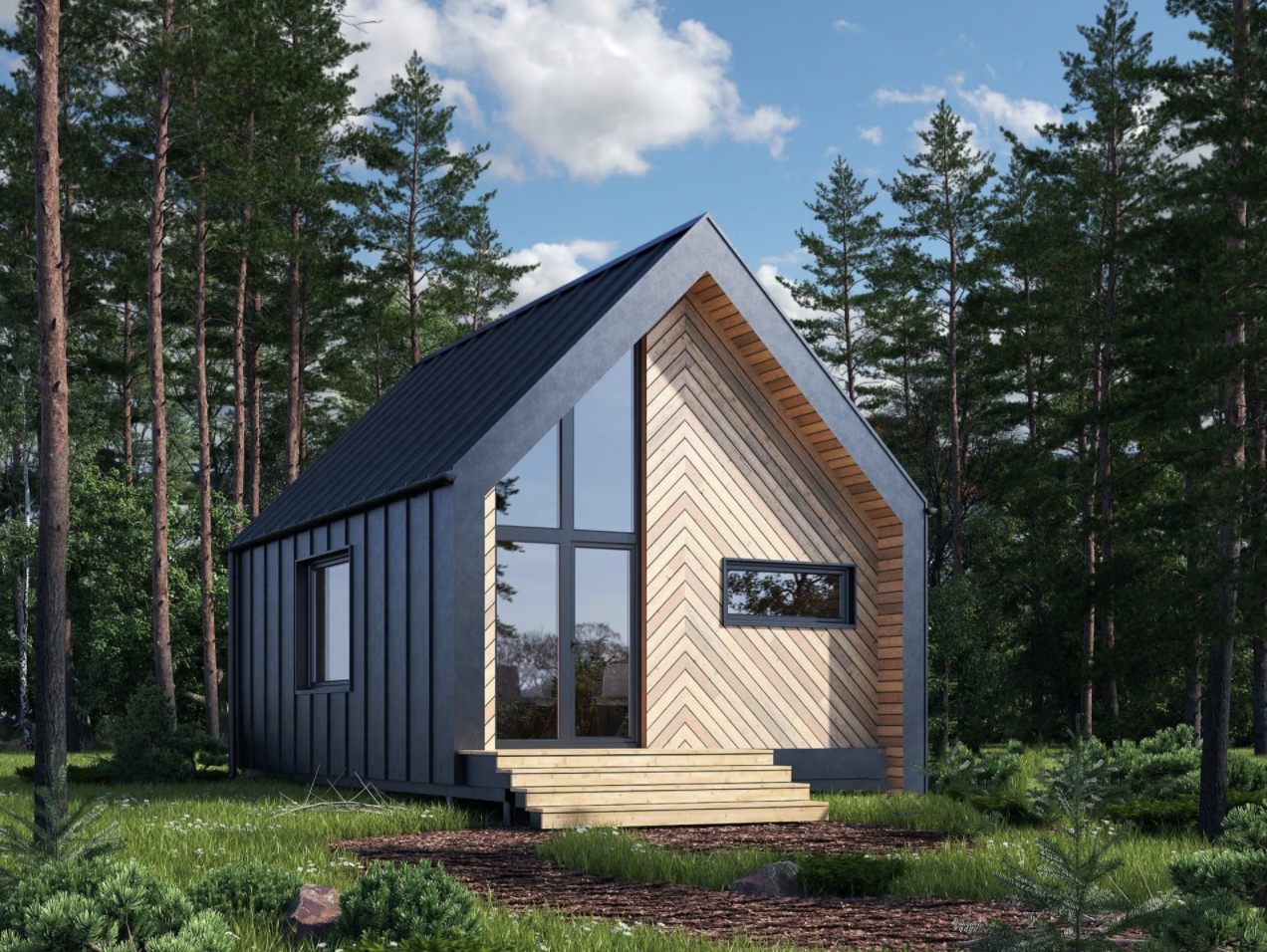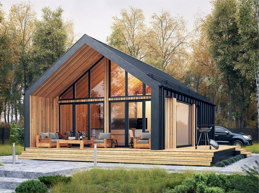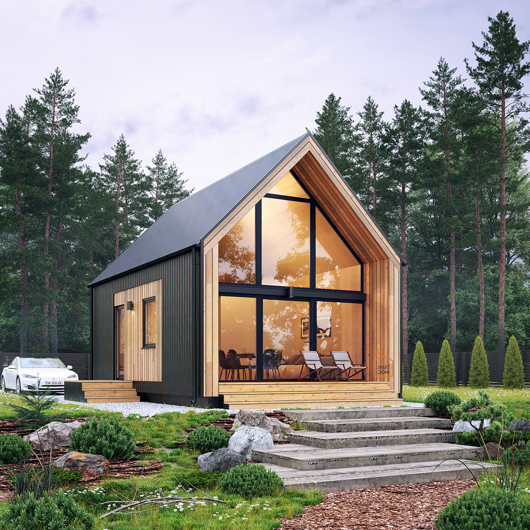 Одноэтажный каркасный домик с мансардой